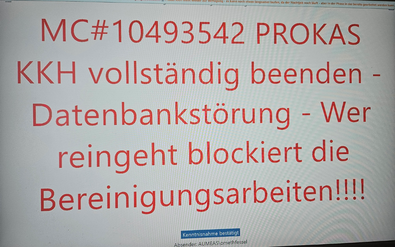 [AUMEAS Abteilungen] Prokas KKH - Bereinigungsarbeiten Datenbank [MC#10493542]