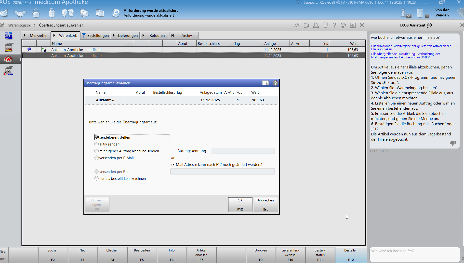 > (IXOS) bzw. Übersicht Lieferantenvorgang (Prokas)