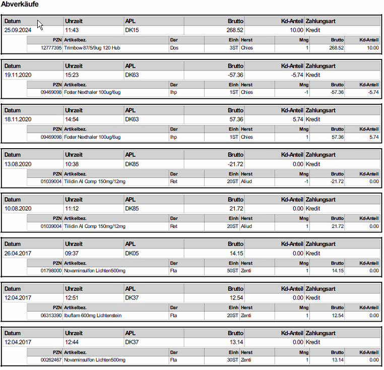 zusammenfassen falls möglich) bzw. nach Prüfung auf offenen Abverkäufe
