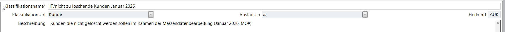 - Kunde ist nicht in der Kontaktklassifikation IT/ nicht zu löschende