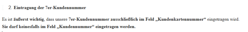 Es ist äußerst wichtig, dass unsere 7er-Kundennummer ausschließlich