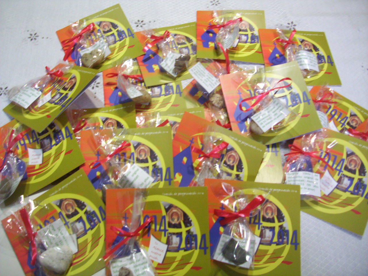 En otro lugar preparan los folletos con la oración de peregrinación 2014
